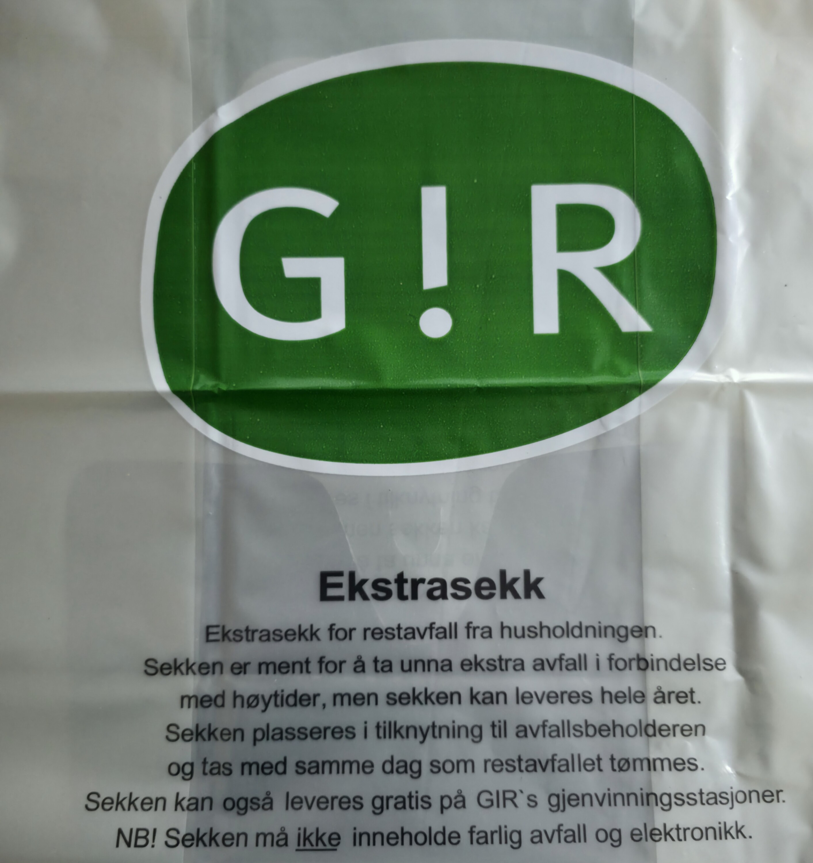 Nå kan du få kjøpt G!R ekstra-sekk på gjenvinningsstasjonene som du kan bruke i perioder hvor du har mer restavfall enn vanlig.